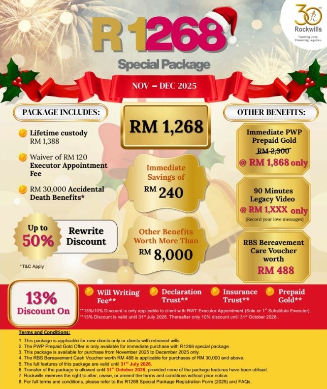 It is by far the largest professional estate planning company in the region, having written more than 320,000 Wills (up to August 2025) and holding over RM25 billion worth of assets under trust. To date, the Group has trained more than 10,000 Intermediaries including Rockwills Estate Planners, Rockwills Will-writers, financial planners and agents. The core business of the Group is introduced through a network of more than 6,500 Rockwills Estate Planners both in Malaysia and Singapore.