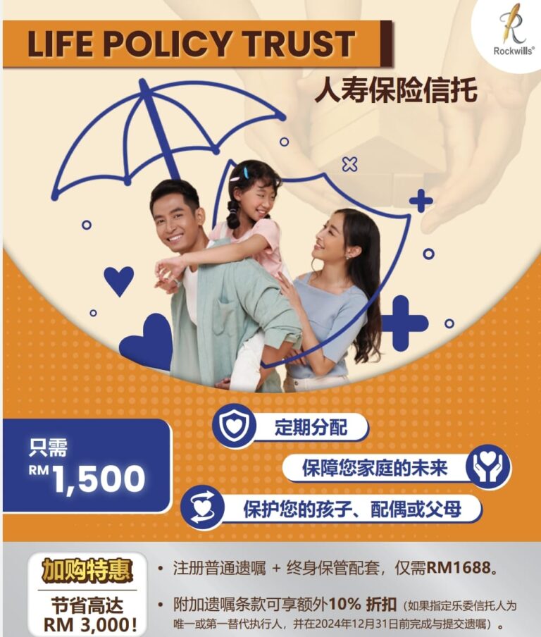 - 指定执行人与受托人: 挑选并指定值得信赖的人士作为执行人及受托人,保护您的受益人权益。